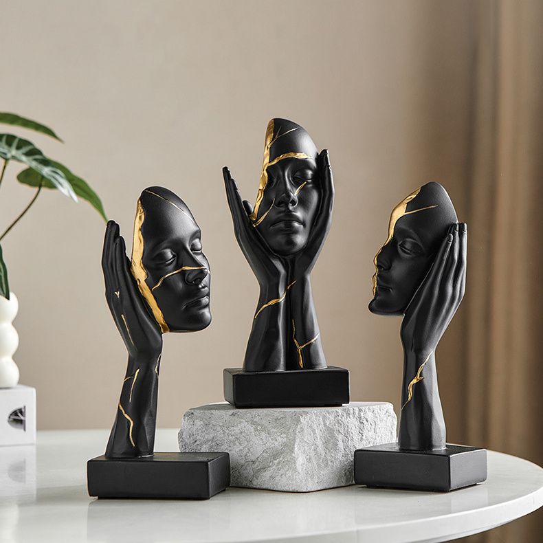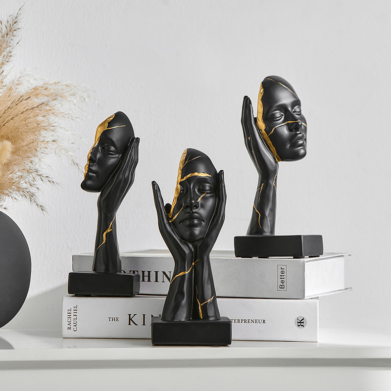 The abstract face sculpture at the heart of this design grabs attention instantly. Crafted from premium black and gold resin, it blends art with emotion. Moreover, its kintsugi face decor accents bring a sense of depth and history. As a modern statement piece, it fits both contemporary and classic interiors. In addition, the mix of smooth curves and fractured lines makes it unique. Therefore, collectors and casual decorators alike will find it irresistible.