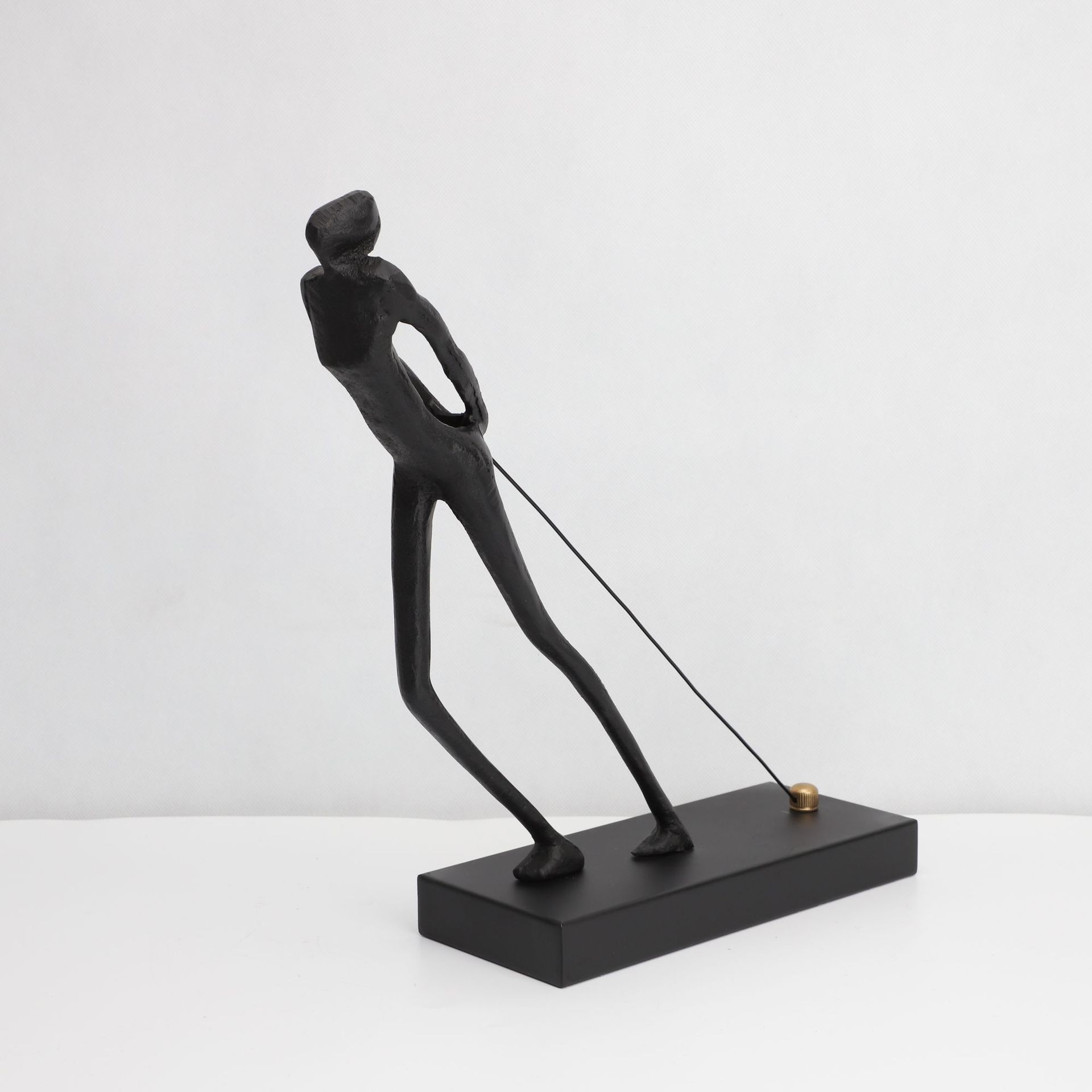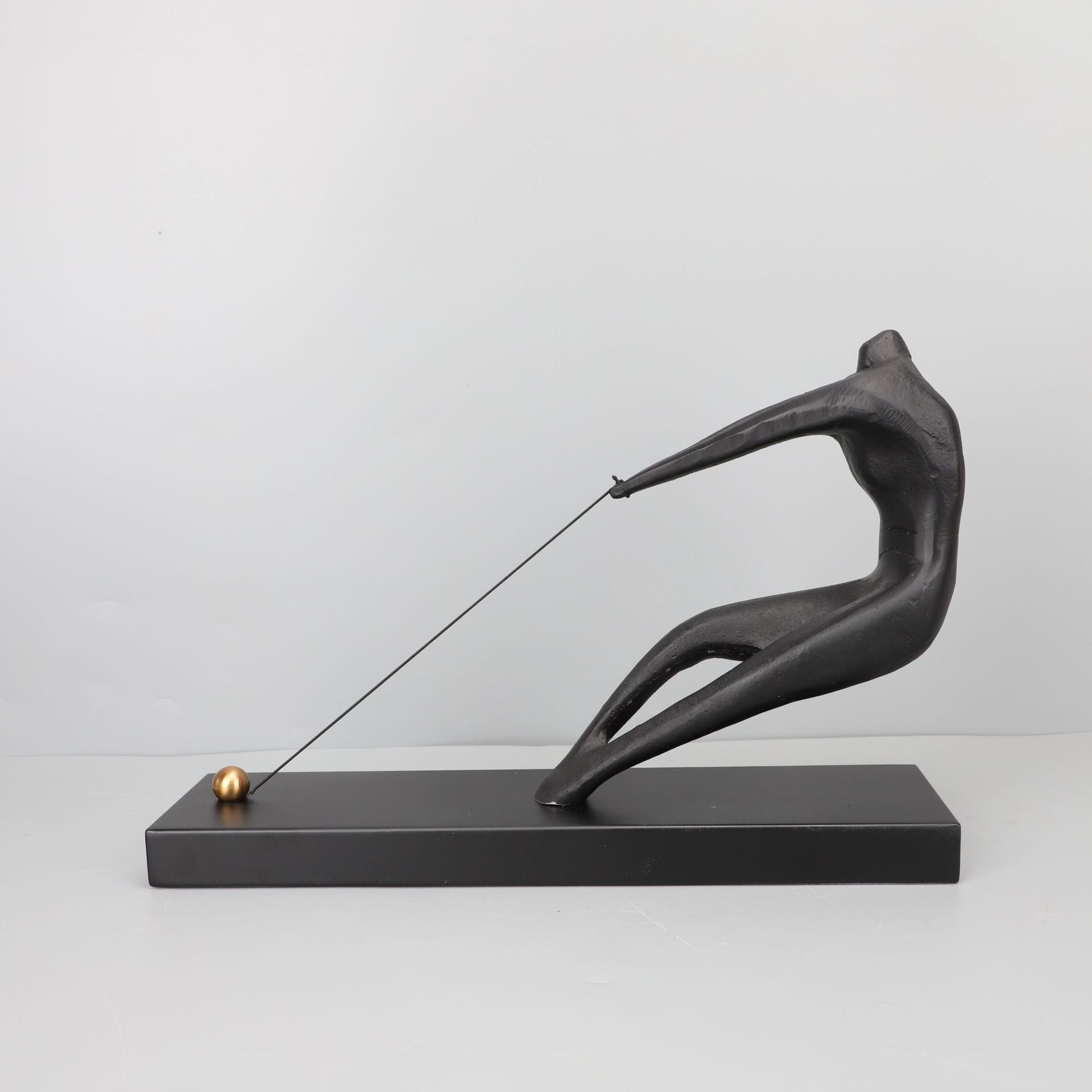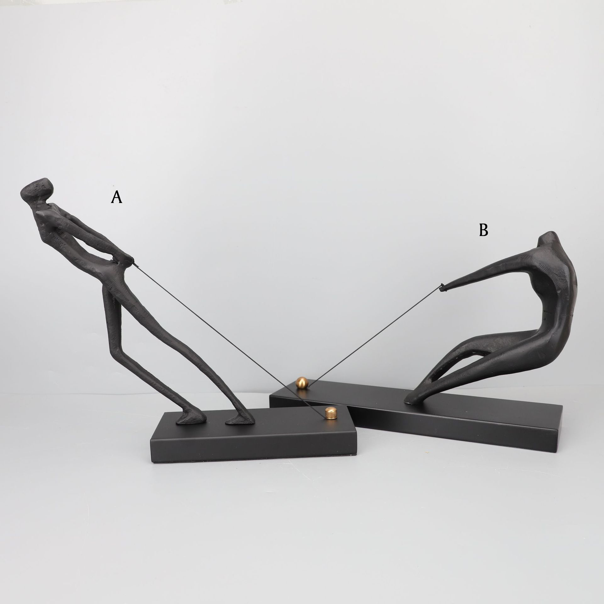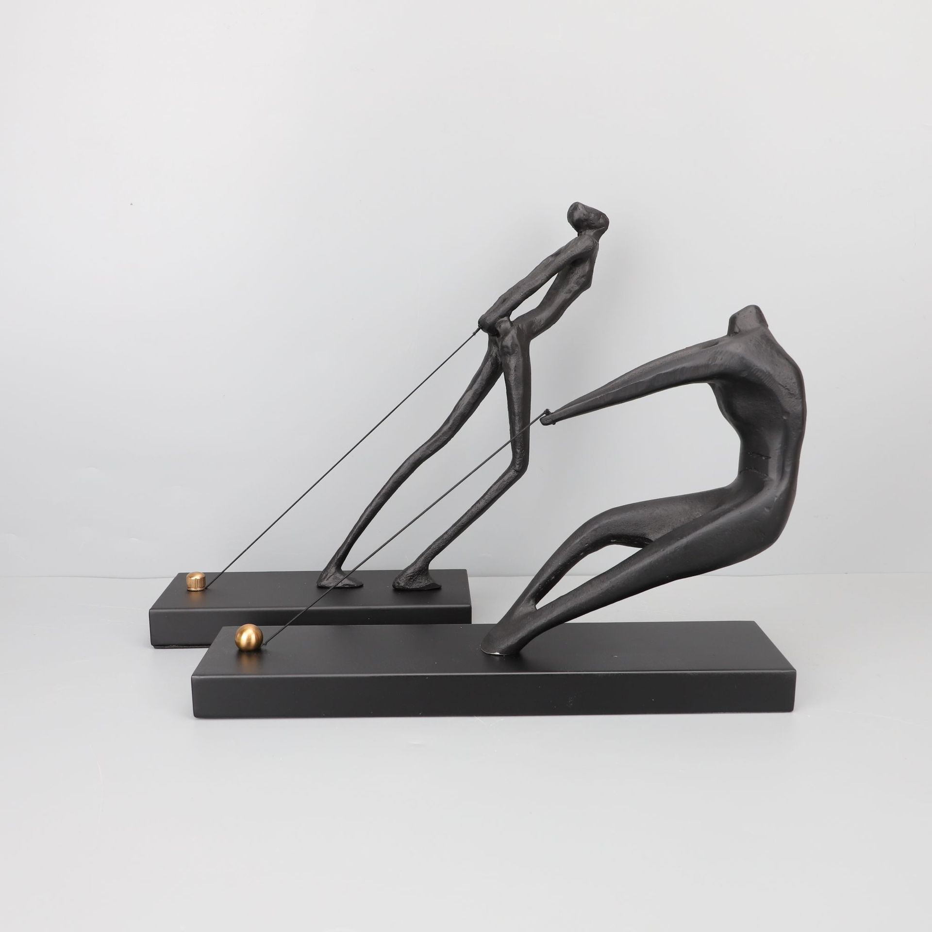 Modern Style Home Decor Black Iron Casting Sculpture Pulling Rope Abstract Metal Figure Statue