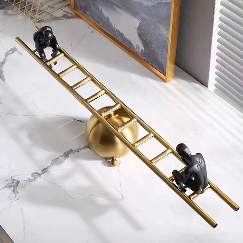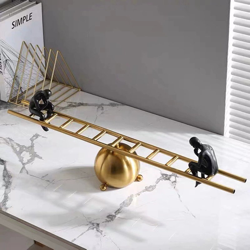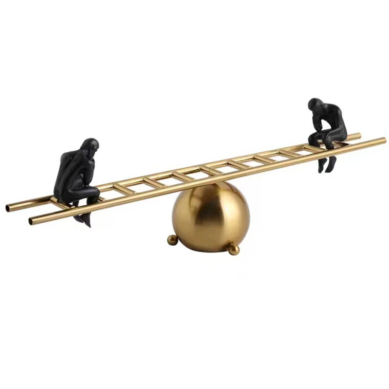 Balance Sculpture brings harmony and style to any space from the moment you see it. Crafted with a golden metal sphere and a ladder‑like beam, this modern sculpture supports two matte‑black figures in reflective poses. Moreover, the polished gold finish contrasts strikingly with deep black resin. As a decorative sculpture, it captures attention while remaining lightweight and sturdy. Furthermore, it serves as both art and symbol, inviting viewers to ponder balance in life.